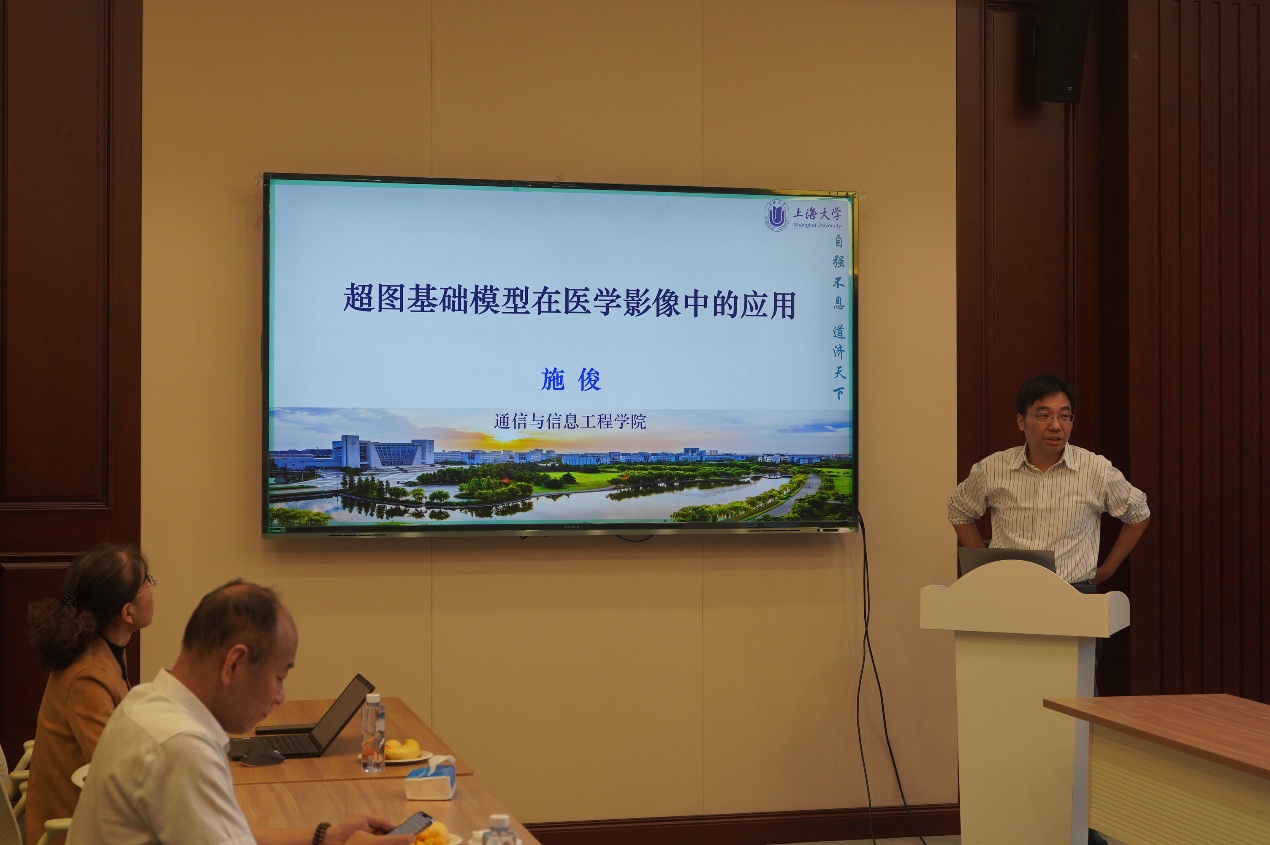 会议的第一场报告是上海大学通信与信息工程学院副院长施俊教授的超图基础模型在医学影像中的应用研究的报告。随着人工智能技术的飞速发展,面向医学影像的基础模型不断被研究提出,并在各种影像分析任务重取得了优异的性能,已经成为学术和工业界的热点。超图是常规使用的图的泛化,能更为有效的表达复杂关系,目前在医学影像领域也有着广泛的应用,但面向超图的基础模型研究还较少。施俊教授的报告介绍超图基础模型,及其在医学影像领域中的两个应用。